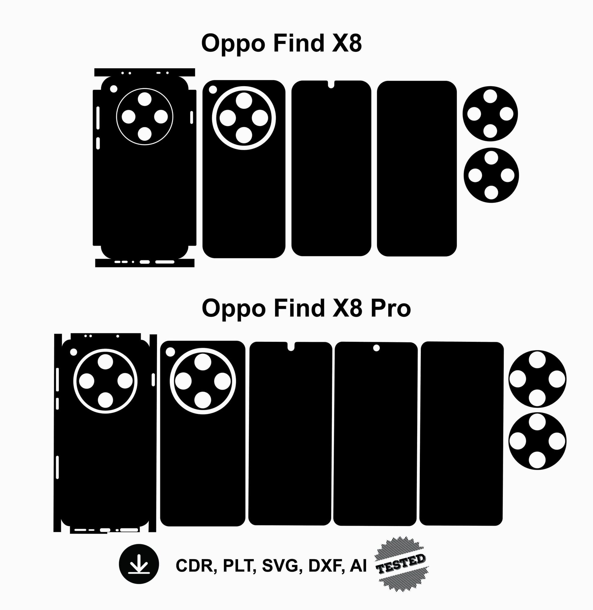 Oppo Find X8 & X8 Pro Skin Template: Custom Phone Wrap (SVG DXF AI)